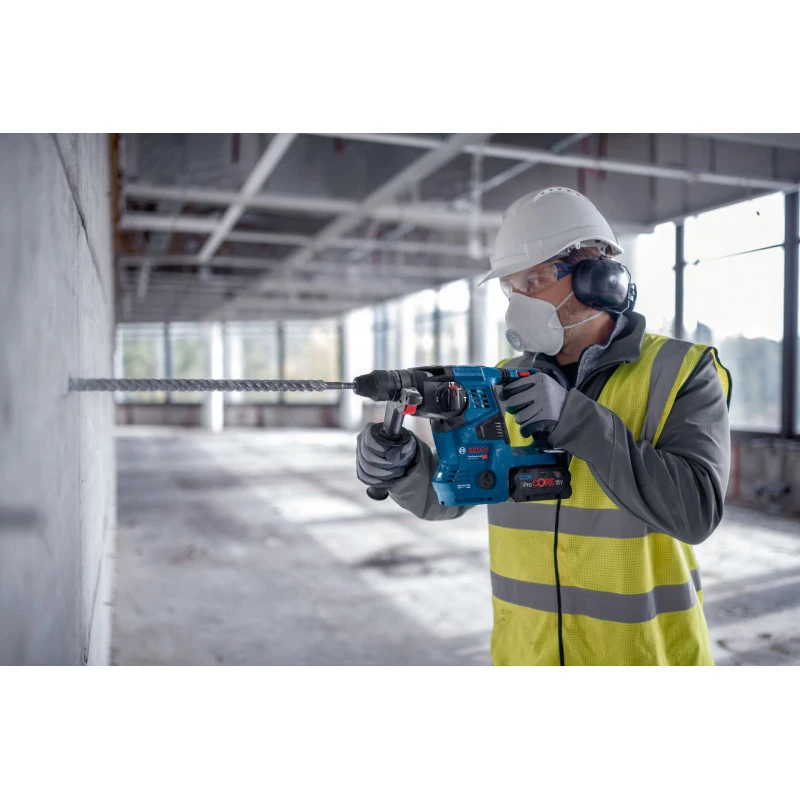 Ce perforateur est idéal pour perforer dans le béton, la pierre et la maçonnerie. Elle est compatible avec toutes les batteries et tous les chargeurs du Professional 18V System Bosch. Pour travailler dans un environnement plus sain sans poussiere, il est possible de raccorder facilement le dispositif d’aspiration GDE 18V-16 Professional. Également compatible avec AMPShare, l’alliance batteries multimarques.