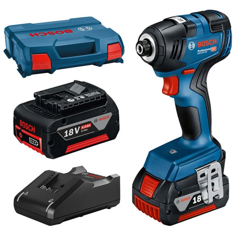 La GDR 18V-200 Professional est conçu pour le serrage et desserrage de vis dans de la tôle, du métal et du bois. De plus, cette visseuse a chocs sans-fil est compatible avec toutes les batteries et tous les chargeurs 18 V de Bosch Professional (Professional 18V System).