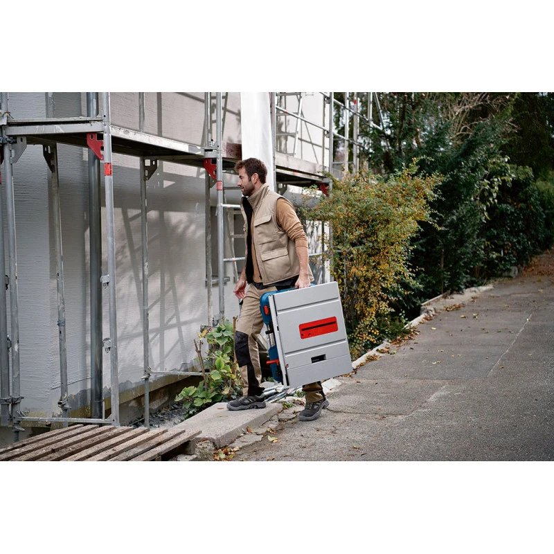 La scie sur table BITURBO compacte GTS 18V-216 Professional avec capacité de coupe de 70 mm allie performances élevées et mobilité totale. Son moteur haute performance sans charbon alimenté par une batterie ProCORE18V assure une mobilité maximale sur les chantiers. Dotée d’un design optimisé, d’une profondeur de coupe de 70 mm et d’une largeur de refente maximale de 635 mm, cette scie offre une capacité de coupe couvrant toutes les applications les plus courantes. La grande légereté de la scie, les poignées ergonomiques ainsi que les rangements pour les butées et le protege-lame permettent de transporter la scie facilement et en toute sécurité.