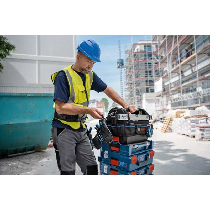Avec le sac a outils GWT 20 et le set d’outils a main de Bosch Professional, vous avez vos outils essentiels toujours a portée de main, toujours bien rangés et prets pour le transport. Le sac a outils ouvert est doté de divers compartiments et poches permettant un rangement personnalisé et un acces rapide aux outils ; des boucles intégrées permettent de fixer des deux côtés des supports ProClick ou sacoches porte-outils. Grâce aux clips de verrouillage, le sac peut etre clipsé a un coffret L-BOXX Bosch pour un transport en toute sécurité. Le set inclut 8 outils a main Bosch Professional pour usage général : 3 tournevis, set de 9 clés a six pans, pince coupante diagonale, marteau de mécanicien, cutter a lame rétractable et niveau magnétique.
