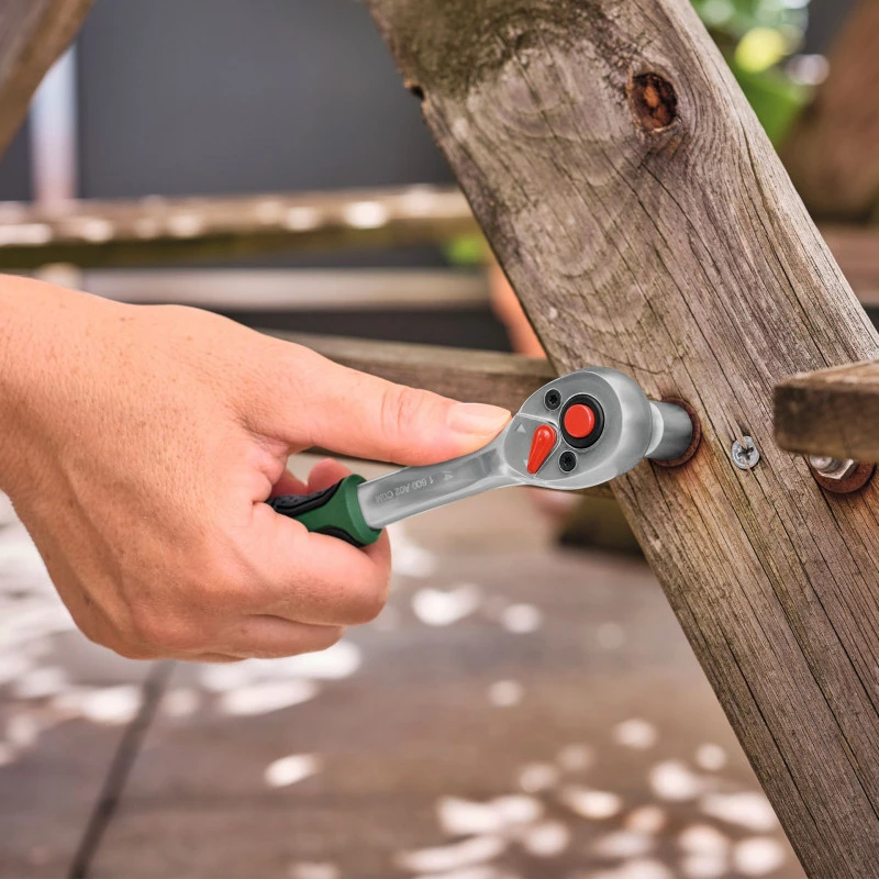 Le set comprend un cliquet 1″, un tournevis universel, une pince universelle, 2 adaptateurs d’embout, 10 douilles et une rallonge de 50 mm.