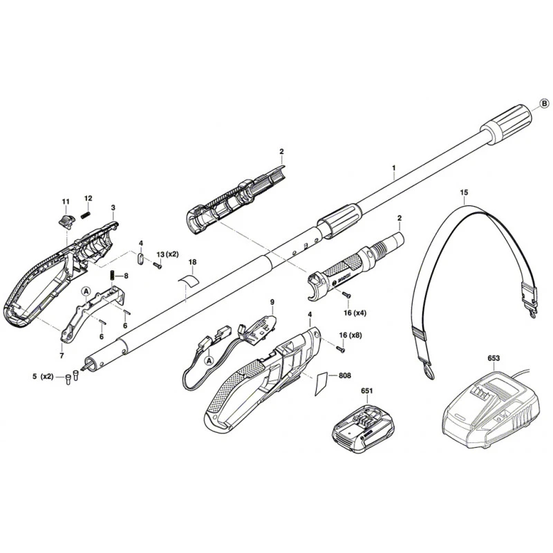 • Perche télescopique permettant d’élaguer sans effort des branches en restant au sol
