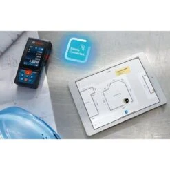 La cellule de réception Bosch LR 7 Professional est équipée d’une zone de détection s’étendant sur 8 cm. Cette cellule est conçue pour repérer efficacement les lignes de laser, qu’elles soient vertes ou rouges. Elle intègre des indications d’alignement visuel (via écran et LED) ainsi que sonore, afin de permettre un travail dans diverses conditions de visibilité.