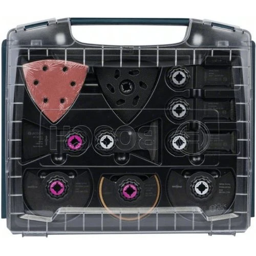 Ce coffret I-BOXX PRO de la marque Bosch contient des accessoires Starlock pour des applications universelles. Ces pièces sont contenues dans une boîte transparente avec des compartiments séparées pour un transport sûr et une rangement facile. Par ailleurs, ils ont le système de fixation Starlock « Snap-In » qui permet le changement de lame en seulement 3 s sans contact avec la lame.