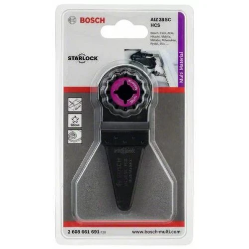 Cette lame coupe-joint AIZ 28 SC pour outils multi-fonctions de Bosch est utilisée pour l’enlèvement de matériaux tendres comme le mastic ou encore les joints de dilatation. Elle dispose d’un bout aiguisé et d’un tranchant continu sur des deux côtés de la lame assurant un travail sans effort. De plus, l’outil bénéficie d’une spatule rigide en acier à haute teneur en carbone (HCS) pour une coupe facile sans risque de courbage ou de déformation. La lame peut être changée rapidement et sans outil grâce au système de fixation Starlock Snap-In. Son interface en 3D garantit un transfert de puissance optimal de la machine à l’accessoire. En outre, la AIZ 28 SC convient aux outils électroportatifs Starlock, Starlock Plus et Starlock Max ainsi qu’aux outils multi-fonctions standards.