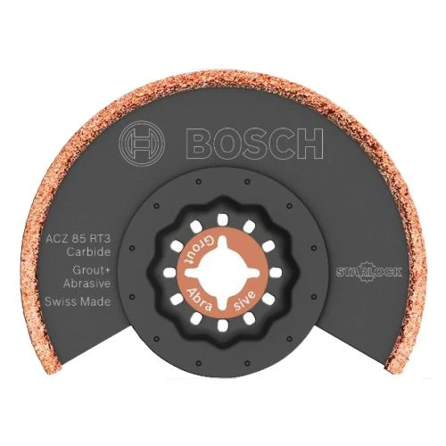 Cette lame de scie oscillante ACZ 85 RT3 de la marque Bosch est idéal pour le déjointage des carreaux (murs et sols) et pour la réalisation de petites découpes dans les carreaux muraux tendres, et de rainures dans les panneaux de fibre-ciment ou dans les matériaux composites renforcés de fibre. Cet outil dispose d’une arête de coupe à concrétion diamant de qualité contre l’usure, des extrémités en pointes acérées de la lame de scie segment qui facilitent la coupe, même dans les coins les plus inaccessibles tandis que sa forme arrondie permet des coupes droites.