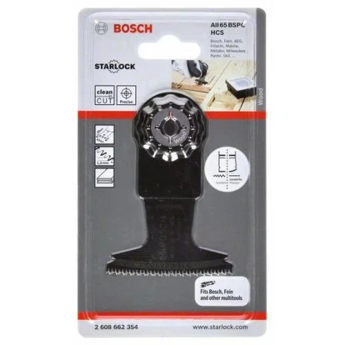 La lame de scie oscillante AII 65 BSPC de la marque Bosch est dotĂ©e d’une denture japonaise tridimensionnelle minimisant le dĂ©veloppement de la chaleur lors des travaux. Elle permet ainsi des coupes dans le bois dur sans Ă©clats ni brĂ»lure. Son arĂŞte de coupe arrondie (Curved-Tec) assure des coupes plongeantes prĂ©cises et rĂ©gulières. Son design plat et son interface 3D assurent un balancement rĂ©duit grâce Ă un transfert de puissance optimal et direct de la machine Ă l’accessoire. La lame peut ĂŞtre remplacĂ©e facilement et sans outil avec le système de fixation Starlock « Snap-In ». En outre, la AII 65 BSPC est compatible avec les outils Ă©lectroportatifs Starlock, Starlock Plus et Starlock Max ainsi qu’avec les outils multi-fonctions standard.