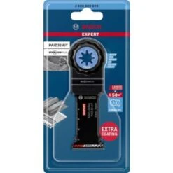 La lame de scie oscillante Starlock Plus Carbure MétalMAX de la marque Bosch Expert est destinée pour couper les vis trempées qui rouillent ou qui restent coincées. Elle possède un revêtement supplémentaire qui rend le carbure résistant. Elle offre une longévité certifiée par Bosch Carbide Technology (technologie carbure). La lame permet une coupe à ras de la surface, même pour le métal trempé. Elle est faite également pour couper les vis de fenêtre et les armatures durcies. De plus, elle est dotée d’un support StarlockPlus pour un transfert de puissance maximal et un changement de lame facile en 3 secondes.
