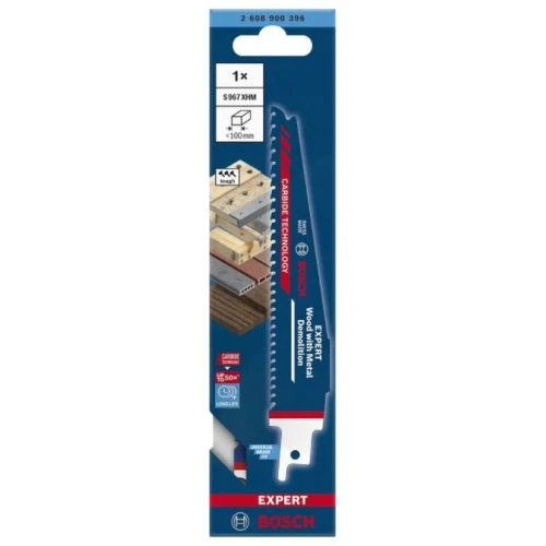 Les lames de scie Sabre Bosh Expert Wood with Metal Demolition S 967 / S 1167 / S 1267 XHM ont une longue durée de vie pour la coupe dans le bois incorporant du métal garanti par Bosch Carbide Technology (technologie carbure). Le pas de denture est progressif pour couper des matériaux de toutes épaisseurs. De plus, elles conviennent à toutes les scies sabres avec emmanchement en S.