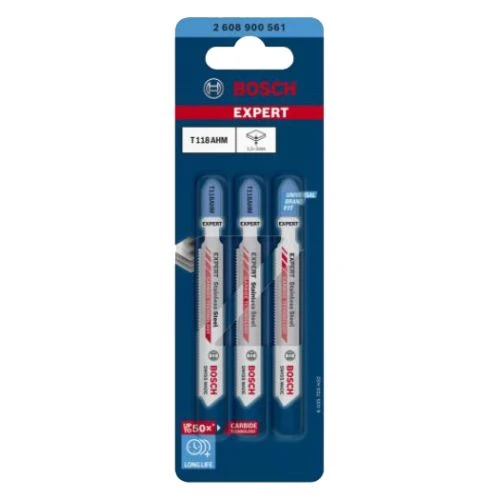 La lame de scie sauteuse T 118 AHM permet de réaliser des découpes dans les tôles en acier inoxydable. Elle est compatible avec des scies sauteuses ayant un système de fixation en T. Sa denture est soudée à un corps en acier quasiment flexible et la découpe dans l’acier haute résistance n’est plus difficile à réaliser.