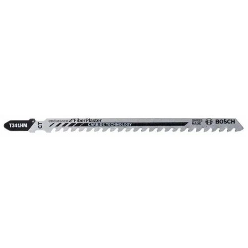 La lame de scie sauteuse T 341 HM de Bosch est conçue pour la réalisation de découpes rectilignes dans des éléments spéciaux. La denture latérale acérée à concrétion carbure permet une utilisation continue dans des matériaux à base de minéraux abrasifs. En outre, la denture progressive soudée à un corps en acier extrêmement flexible permet de découper des panneaux en plâtre, en fibre de ciment, en béton cellulaire et en plastiques renforcés de fibres de verre. Avec la denture à grand pas de 4,3 mm, elle permet d’effectuer la découpe de matériaux de plâtre et de fibres jusqu’à 80 mm de diamètre. La lame 341 HM Special for Fibre and Plaster est compatible avec les scies sauteuses avec systèmes de fixation en T.